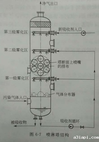 实现对气体组分高效率的吸收,目前所采用的废气处理方式和设备很多。但其最基本的要求是实现气体与吸收剂液体的密切接触,也就是要提供尽可能大的有效接触面积和高强度的界面更新,并最大限度地减小阻力和增大推动力。据此,对吸收设备提出以下基本要求。